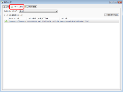 履歴を表示するファクスが表示されます。[すべて]のみ選択できます。