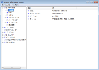 System Information Viewerで取得する環境情報の項目がツリー表示されます。