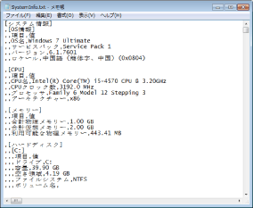 取得された環境情報のテキストファイル名は「SystemInfo.txt」で固定です。