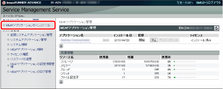 インストール手順、SMSに必要なシステム環境、SMS起動前の準備、SMSへのログインについて、詳しくはimageRUNNER ADVANCEの取扱説明書を参照してください。