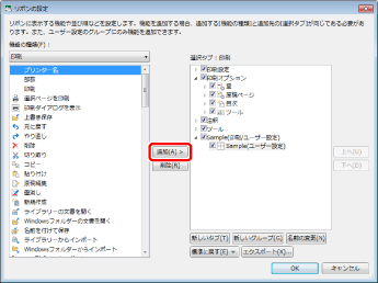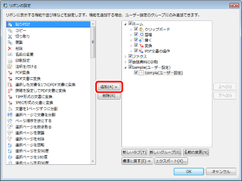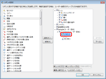 右側の一覧に、選択したコマンド/グループが追加されます。
