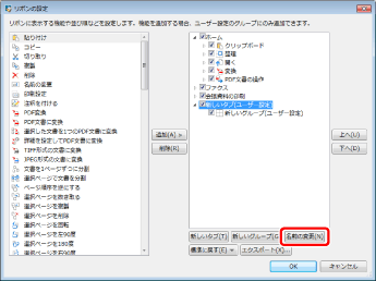 選択したリボンのタブ、またはグループの名前が変更されます。