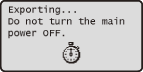 The screen remains the same during the export process. Do not operate the machine until the <Export is complete.> message is displayed.