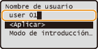 Introduzca su nombre de usuario utilizando las teclas numéricas, seleccione <Aplicar>, y pulse