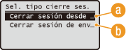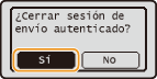 para cambiar a otra función distinta a la que está utilizando, aparecerá la siguiente pantalla de confirmación de cierre de sesión. Para cerrar sesión en Envío autorizado (función de fax o escaneado), utilice / para seleccionar <Sí>, y pulse .![]() |
