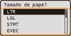 Seleccione el tamaño de papel y pulse .
