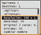 <Opciones favoritas> <Guardar/Eliminar> seleccione la opción edite la opción <Aplicar> <Sí> . No puede cambiar los destinos registrados en la opción con este procedimiento. Registre una nueva opción con los destinos deseados.Si desea eliminar una opción registrada, pulse