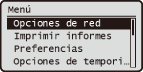 Todas las opciones sobre la red se muestran con descripciones breves. Las opciones predeterminadas aparecen marcadas con una cruz (