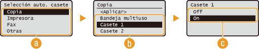 ). La selección de cassette de forma automática siempre está habilitada para la impresión en papel introducido desde la bandeja multiuso.