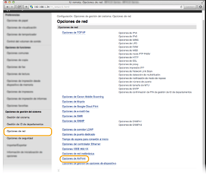 Haga clic en [Opciones de red]  [Opciones de AirPrint].
