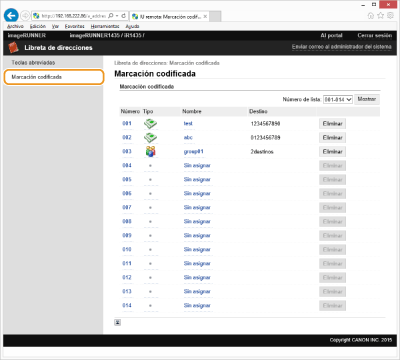 Puede eliminar un destino registrado haciendo clic en [Eliminar].