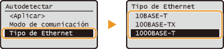 seleccione <10BASE-T> , <100BASE-TX> o <1000BASE-T> .![]() |