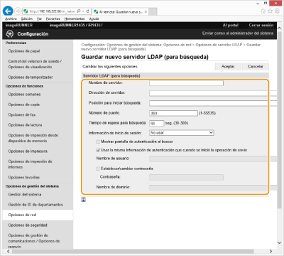 Registro de servidores LDAP (sólo imageRUNNER 1435iF / 1435i)