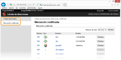 Registro de la libreta de direcciones desde la IU remota (sólo imageRUNNER 1435iF / 1435i)