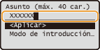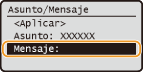 Introduzca el asunto utilizando las teclas numéricas, seleccione <Aplicar>, y pulse
