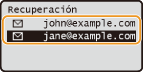 Puede seleccionar un destino entre los tres últimos destinos más utilizados. Cuando se especifica un destino utilizado anteriormente, el equipo también configura las mismas opciones de lectura, como la densidad, utilizadas la última vez que se enviaron documentos a dicho destino.