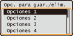 Elija una opción entre <Opciones 1> y <Opciones 18>, y pulse .