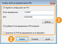 Seleccione la casilla de verificación para habilitar la configuración de PIN. [ID de departamento]