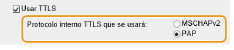 NOTA: Protocolo interno de TTLS Puede seleccionar MSCHAPv2 o PAP. Si desea utilizar PAP, haga clic en el botón de opción [PAP].