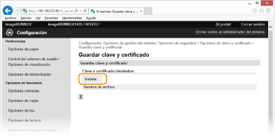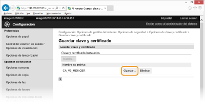 Haga clic en [Guardar clave y certificado] o [Guardar certificado de CA].