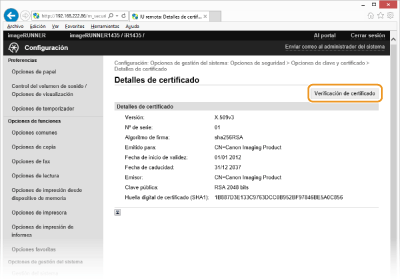 Haga clic en [Verificación de certificado].