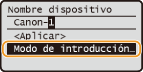 para cambiar el tipo de texto introducido. El tipo de texto seleccionado actualmente se indica con <Modo de introducción: A>. Puede elegir entre tres tipos: <A> (mayúscula), <a> (minúscula) o <12> (números).