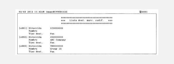 Puede imprimir una lista para consultar los detalles de los destinos registrados en la libreta de direcciones. Las listas pueden imprimirse de forma independiente para los tipos de registro <Marcación codificada>, <Teclas abreviadas> y <Grupo>.