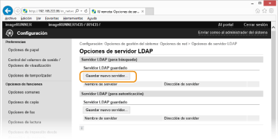 Registro de servidores LDAP (sólo imageRUNNER 1435iF / 1435i)