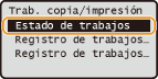 para seleccionar <Trabajos de copia/impresión>, y pulse