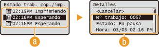 .![]() <Estado trab. cop./imp.>Muestra la lista de documentos que se están procesando, copiando o a la espera de procesarse.