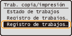Seleccione <Registro de trabajos de impresión>, y pulse