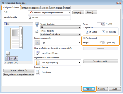 Las opciones de ampliación/reducción de algunas aplicaciones tienen prioridad con respecto a las del controlador de impresora.