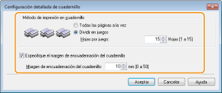 Haga clic en [Cuadernillo] para especificar las opciones detalladas según sus necesidades