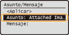 Introduzca el asunto utilizando las teclas numéricas, seleccione <Aplicar>, y pulse