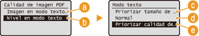 Especificación de las opciones de calidad de imagen de <PDF (Compacto)> y <PDF (Compacto/OCR)>