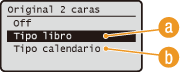 Si aparece la pantalla para especificar las opciones de escaneado, podrá especificar la opción de escaneado a doble cara pulsando