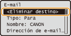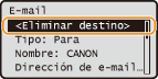 Si desea eliminar destinos de una forma rápida y sencilla sin mostrar una lista de destinosAntes de seleccionar <Confirmar/editar destino> en el paso 1, puede pulsar