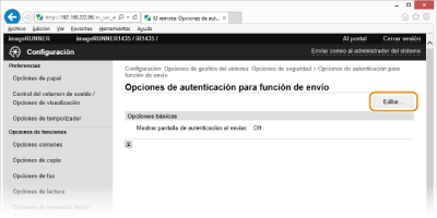 Especificación de las opciones de Envío autorizado (sólo imageRUNNER 1435iF / 1435i)