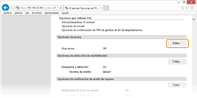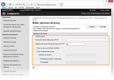 Seleccione la casilla de verificación [Usar proxy] y especifique las opciones necesarias.