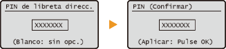 La libreta de direcciones puede configurarse de forma que solicite a los usuarios un PIN para agregar nuevas entradas a la libreta de direcciones o editar las entradas existentes. La configuración de un PIN para la libreta de direcciones puede reducir el riesgo de que los documentos se envíen a destinatarios imprevistos, ya que los cambios en la libreta de direcciones solo pueden realizarlos los usuarios que conozcan el PIN.