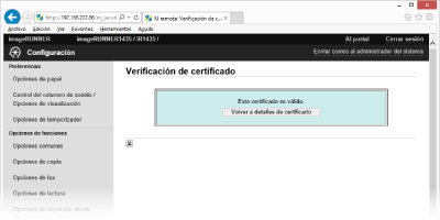 Haga clic en [Verificación de certificado].