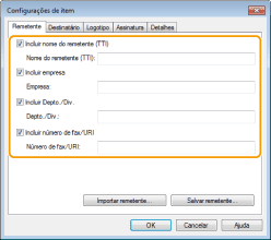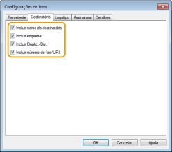 Selecione os itens de destinos que você deseja incluir e insira as informações. Nomes de destinos, empresas, departamentos e números de fax especificados na guia [Selecionar destinatário]/[Inserir destinatário] (
