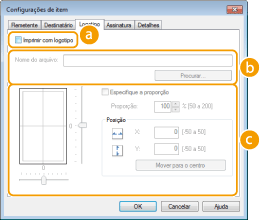 Especificar cada configuração. A tela seguinte exibe um exemplo para quando a guia [Logotipo] está selecionada.