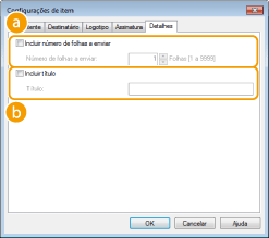 Selecione esta caixa de seleção se você deseja incluir o número de folhas que você enviará na folha de capa e especifique o número de folhas em [Número de folhas a enviar]. O número de folhas a enviar não é contado automaticamente. O valor especificado aqui está incluído na folha de capa.