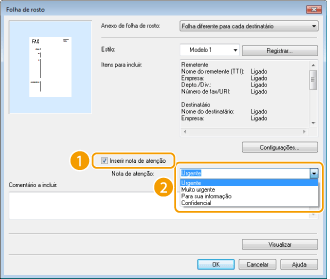 Estão disponíveis notas de atenção como "Urgente" e "Confidencial." Você também pode inserir caracteres diretamente em [Nota de atenção] em vez de selecionar uma nota da lista.
