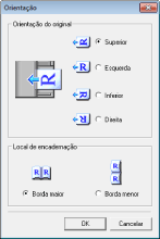 Se os documentos forem colocados no alimentador, defina a orientação dos documentos em [Orientação]. Você também pode definir [Local de encadernação] se documentos de dois lados forem colocados no alimentador.