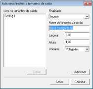 Se você selecionar [Adicionar/Excluir], você pode adicionar novas configurações de tamanho de saída e excluir os tamanhos adicionados.