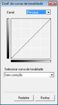 A curva de tonalidade é uma linha curva que indica os níveis de contraste e brilho da imagem antes e depois do ajuste. Selecione uma curva de tonalidade registrada para ajustar os níveis brilho e contraste da imagem.