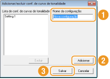 A tela [Adicionar/Excluir conf. de curva de tonalidade] ou [Adicionar/excluir configurações de limiar] é exibida.