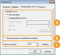 Defina as configurações que são aplicadas ao digitalizar um documento usando um aplicativo e as configurações para as operações do ScanGear MF.